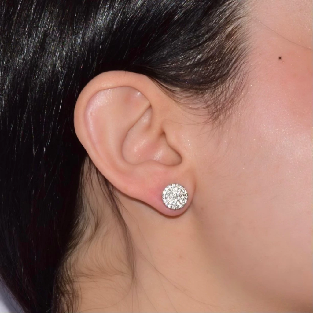 O Brinco Botão Zircônia é a materialização do brilho eterno e da elegância clássica. Seu estilo atemporal é elevado pela forma circular perfeita, totalmente coberta por microzircônias cravejadas, que se unem para formar um cluster de luz intensa, evocando o fulgor de um diamante e o brilho das estrelas.