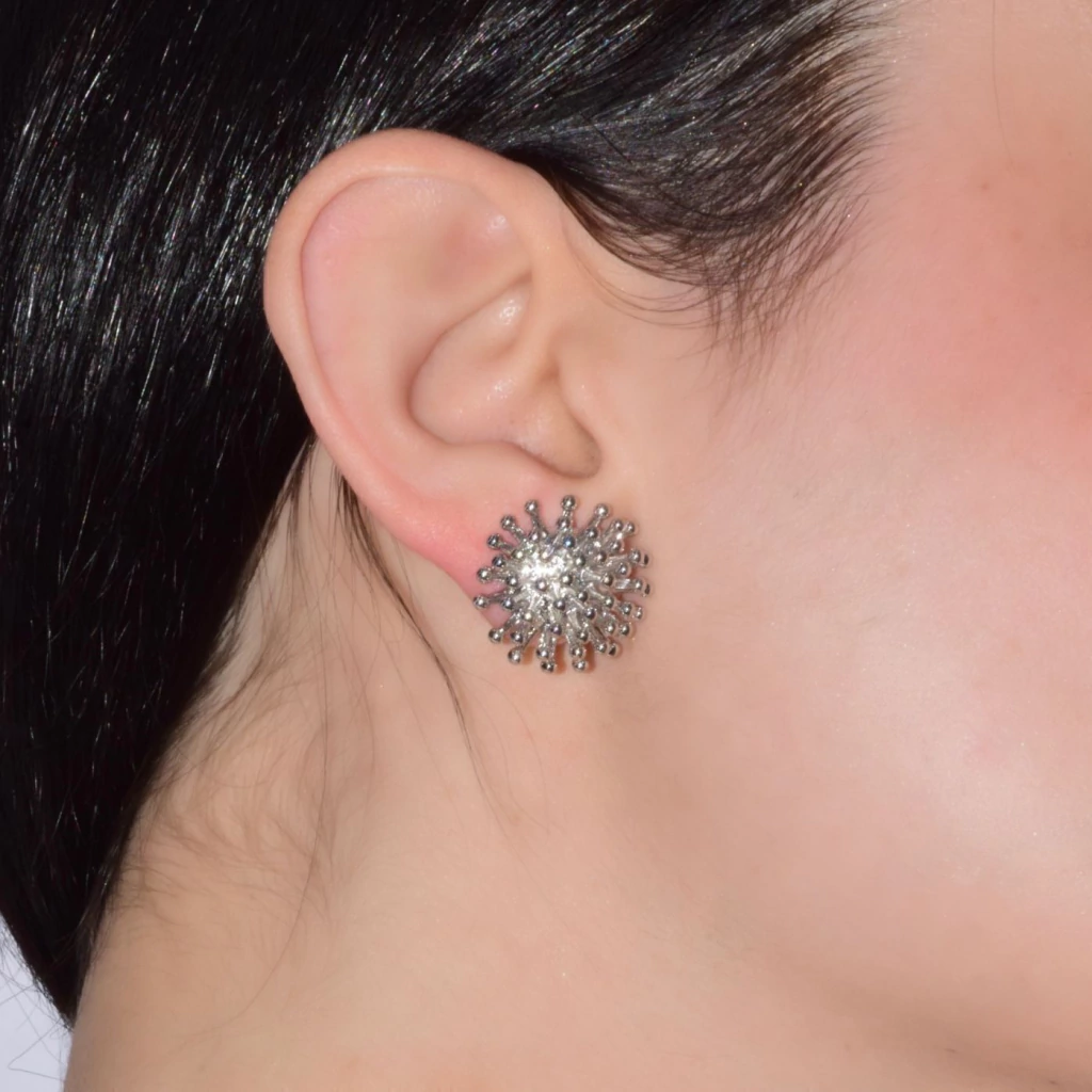 O Brinco Raio de Sol é a materialização do design orgânico e do brilho celestial. Seu estilo único é elevado pelas múltiplas esferas texturizadas que irradiam de um centro cravejado com um ponto de luz, criando uma forma tridimensional que evoca a beleza radiante de uma estrela ou a textura fascinante da vida marinha.