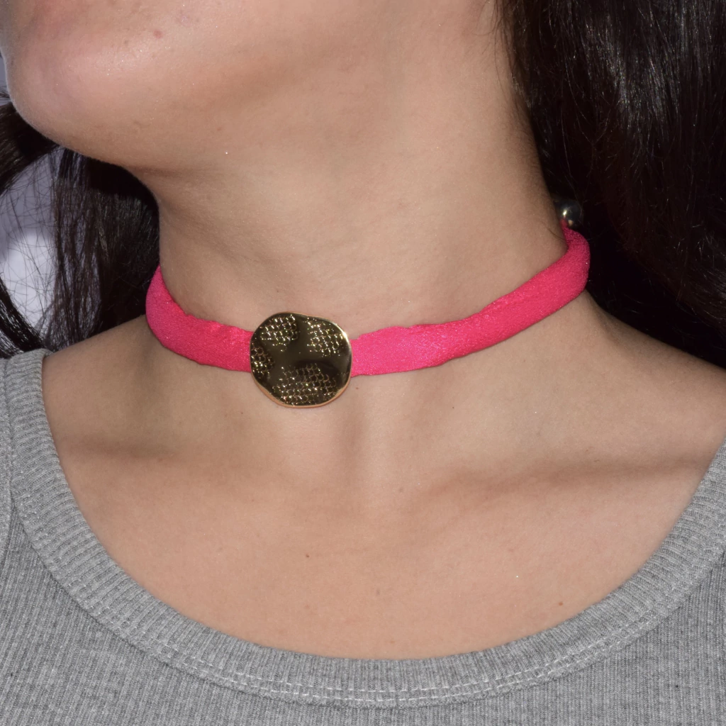 O Colar Statement Ousadia Vênus é a materialização do impacto visual e da moda vibrante. Seu estilo arrojado é elevado pela corda têxtil de toque macio na cor Pink Neon, que se contrasta perfeitamente com o detalhe central dourado, liso e polido.